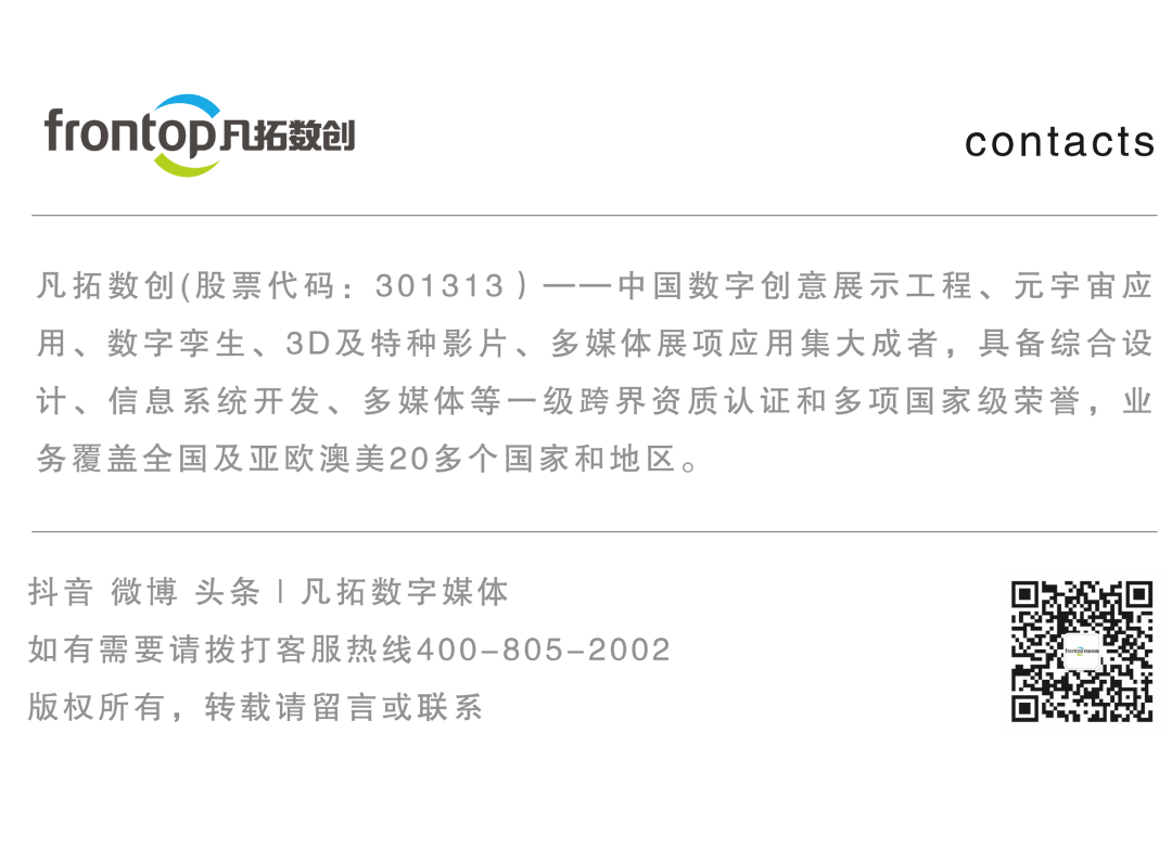 近日,2023全亚洲独立电影节获奖名单公布,凡拓数创为中国国家版本馆·广州分馆打造的全息影片《大美时节 和谐共生(Version Of Nature)》获得最佳实验影片。 作为欧洲独立电影节的同源电影节,全亚洲独立电影节拥有强大的评审团队与专业资源,是全球最具影响力的的电影节之一。此次获奖,既是对版本馆全息影片创意性与艺术性的肯定,也是凡拓助力优秀文化国际传播的重要实践。 凡拓数创始终坚持创新,尝试与众不同、与往不同的展项设计,并全力以赴将创意照进现实。 团队为版本馆全息影院打造的主题影片以中国古代典籍对二十四节气的记载为基础,融入岭南地域特色,演绎与节气相关的自然博物、农桑工艺、信仰礼仪等中华版本,回应人们共通的文化情感和实践经验。 本文专访凡拓数创广州媒体副总经理、全息影院项目创意总监陈雄豹、总导演林芷羽分享展项设计制作的文化内核和技术应用,透过主创团队攻坚克难的经验与心得,启发更多数字展示创意的可能性。 Q1 中华版本种类万千,为什么选择节气作为影片 的主题? 陈雄豹:国家版本馆广州分馆的一大亮点就是数智技术与版本内容的融合。在广州分馆内,我们团队运用了裸眼3D、全息成像、3D Mapping、虚拟现实、空气成像等前沿技术去演绎古代的文字、青铜器、书籍报刊等中华版本的演变发展。 而24节气起源于中华农耕文明,被誉为中国的第五大发明,是中国人认识自然规律的知识体系和一年四季的生活实践,体现了一代代中国人发现、创造、传承下来的文化底蕴。 经过与馆方的多次沟通,我们最终把影片主题定为版本里的24节气,希望能够通过数字化手段活化强大的文化生命力,让现代的观众身临其境地感悟到流传千年的传统智慧。 Q2 国家版本馆广州分馆全息影院与其他特效影片相比,有哪些 特别创新之处? 陈雄豹:这个影厅的多媒体展示方式是我们首创的,综合运用了全息投影、LED、滑轨屏、旋转屏、雾气机、激光灯等多种设备技术来演绎影片,打造出具有互动性的超感官体验——极具冲击力的视觉、听觉和触感等立体全方位体验。 团队创新性地使用戏剧舞台的手段打造沉浸式观影空间,有国家级团队的舞蹈、非遗的粤剧、醒狮表演等,结合影视级的画面给观众带来像看真人戏剧一样动态的、实时的现场感。 Q3 项目的策划设计与落地实现的过程中,团队遇 到了哪些难题? 陈雄豹:面对24节气庞大的信息量,在可行性与创新性之间,团队对多版方案进行了深化、尝试与调整,做出了125个概念设计稿。 为了追求更纯粹的艺术与理想的呈现效果,我们不惜推翻了原有方案,在设计阶段就走过很多弯路,加上现场执行期间不断的调整磨合,终于完成了这个内容丰富且连贯统一的多媒体作品。 林芷羽:如何讲好抽象的节气概念?如何表现出版本所承载着的中华民族共同的文化情感和实践经验?是我们在设计制作过程中需要思考的最大难题。 最终我们选择通过“真人舞蹈+CG舞美”形式来呈现独特的东方岭南意境。在这样的背景下,我们也很荣幸邀请了许多跨领域的艺术家和非遗传承人来共同参与创作。 因为剧场演绎的特性,我们会把好几个节气连贯成为一场戏来整体呈现。这就对舞者有着较高的要求,他们需要在不同的节气中一气呵成地表演出不同的舞蹈情绪和不同的走位,这对现场各部门之间的配合也是一个巨大挑战。因为实际拍摄时间只有两天,我们需要拍摄30多个成片所需要的合成镜头,为了保证拍摄的顺利,我们在拍摄前期花了两个月的时间去跟各部门团队沟通,组建了上百人的拍摄团队一起来工作。 Q4 “沉浸感”是近年来博物馆数字化工作的重要 追求之一,在国家版本馆广州分馆中团队是怎样为观众 创造沉浸感体验的? 陈雄豹:要让观众最大程度的超越现实空间的局限,在有限的空间里感受到无限的意境, 我们在展厅设计上运用了多种媒体联动的创作手段。接近300平米的展厅内,运用了150平米的LED屏幕,通过对纱幕、激光灯等多种常见技术与设备进行协调组合,营造出虚实结合的梦幻感。 在测试的过程中,纱幕、投影与灯光、烟雾产生了令人惊喜的化学反应,营造出立体的视觉效果。从现场观看,烟雾从影片中弥漫到了现实,战场的箭矢、雨滴扑面而来。LED屏配合画面开合、旋转、移动,让空间得到无限延伸,给人由近及远,虚实莫辨的体验。 Q5 您认为可以怎样更好地运用数字技术提升文化 传播效度? 林芷羽:在大量运用各种技术、设备的同时,我们始终坚持对传统文化底蕴的深挖解读传达。 在表现冬至这个节气时,我们将经典粤剧《柳毅传书之花好月圆》突破性地用戏剧+舞蹈的表现形式呈现出来。在小寒、大寒部分,国家级非物质文化遗产醒狮,也和舞者有表达节气意境与人文精神的跨界联动。我们希望利用好技术手段赋予岭南文化新时代新生命力,实现岭南文化的创造性转化和创新性发展。 陈雄豹:设计与技术单独来看都是寻常东西,如何将两者完美结合,以先进展示交互技术为观众打造更具个性化、品质化的文化新体验才是我们的不懈追求。除了全息影厅身临其境的氛围塑造,广州版本馆内的数字展项多注重互动与体验,激发观众以“亲历者”视角去探索、理解与感悟。这样,人们对版本的想象不止停留在过去和现在,更是共同参与到中华文化的未来创新和传承赓续。 优秀传统文