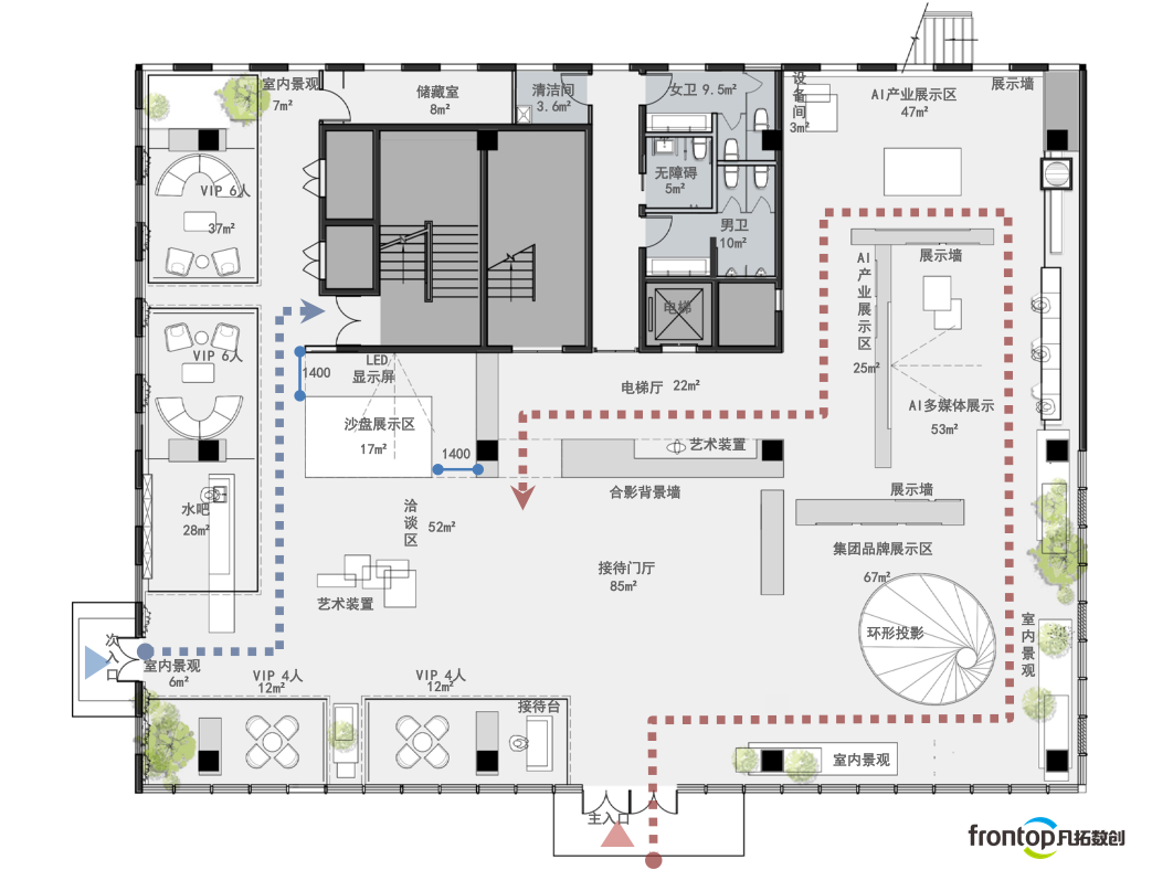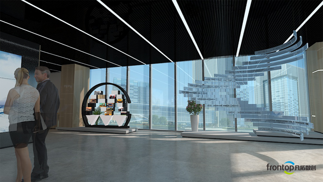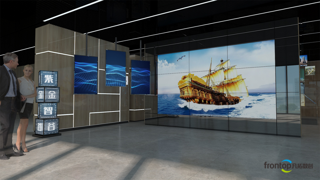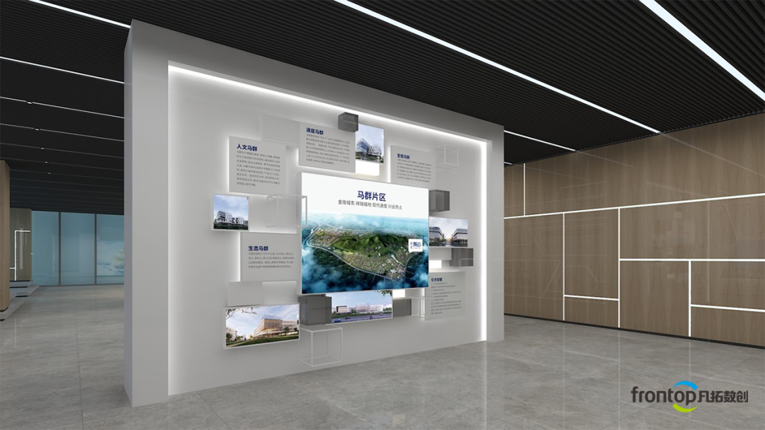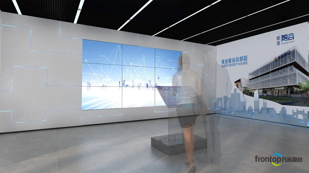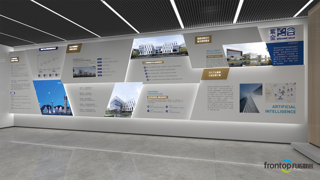岁序常易,华章日新 紫气东来,鼓荡改革风帆 从“六朝古都”迈向“科创之城”,南京在同一片土地诉说着不同时代的发展故事。南京与招商蛇口,正是新时代的共进者。 紫金智谷人工智能产业园,便是南京在历史文化积淀中迸发全新势能的具体表现。这是一座以“人工智能”和“互联网+”为主导产业的创新科技园,也是招商蛇口在南京的首个AI智能总部园,专注AI智能、科技信息等新兴产业,打造科技企业集聚区。 图片来源:mooool木藕设计网 依托着国家战略规划和区域核心腹地优势,紫金智谷已形成具有智能产业外溢与资源辐射齐头并进的智能产业生态社区。如今正带着一座城市对科技创新的渴望,逐浪而行。 图片来源网络 招商蛇口在这个占地4.23万㎡产业园所要布置的项目展厅,也将是传递企业品牌力量的重要窗口。 凡拓数创则通过巧妙的空间设计、多媒体的艺术化运用、探索式交互体验,全方位、动态化的展现该项目内涵及招商品牌文化,以品牌的风帆守护企业的远航。 ▲招商南京创马紫金智谷总部园区展厅实拍 穿透岁月 FRONTOP 解读企业基因 用最简约的品牌概念提炼空间的姿态,展厅整体空间风格偏素雅、简约,塑造“大气磅礴”的感官体验。 参考示意图 辅以科技感的灯带、灯箱等,生态与艺术造型共同点缀空间,形成对比,形成了一个兼具历史厚重感与“艺术数字化设计”现代感的品牌空间。 参考示意图 空间结构上,整个展示空间划分为品牌、项目、产业服务与展示三大部分,做到科学合理的布局得当,分割有致。 品牌区作为整个展示区入口最先映入眼帘的位置,需通过独特的展陈形式体现品牌形象与展区风格。 参考示意图 现场成果图 悬挂艺术装置构成“风帆” 盘点“大事记”追溯招商局集团的光辉历程 时间轨迹的符号化打造视觉冲击 展示 “招商血脉- 蛇口基因”的绵延流淌 构思示意图 近似于箭头的“风帆”引导参观者后续的参观方向,形成视觉逻辑的连贯性,亦是展项动线规划里的一个小巧思。 箭头所指方向构筑招商局集团发展大事件矩阵,一个个高光时刻集中彰显了品牌力量。 千层玻璃构成“紫金智谷”立体艺术装置 远观视角下,一体机与拼接大屏以统一的动态屏保构成“浪潮”,其中一体机展现集团三大业务,拼接大屏播放集团宣传片。 AI无界 FRONTOP 对话品牌故事 参观者走进触发红外感应 激活对应区域的屏幕进行交互 互动飞屏墙面通过灯带勾勒出AI科技电路 当操作台被触动即与大屏交互 灯带将以动态光线汇聚向屏幕 体验者直接感受科技赋能的仪式感、互动感 内容体验上,定点触控即可查询观看紫金智谷项目及集团各项业务布局,用数字化创意构建画面内容,更利于信息的快速接收。 通过这一互动设计,展现了招商蛇口集团锐意创新,在园区服务、AI产业等各领域积极开拓的新版图。 为营造更沉浸式的观展体验,凡拓数创采用互动投影的形式,参观者可以通过触摸相应节点进行趣味互动。 乐趣十足的探索式交互体验 船只在历史发展中不断演进升级的过程,对应招商全生命周期金融服务体系的发展历程,两者结合进行趣味性演绎,通过交互体验使不同动态元素按步骤呈现,让人印象深刻。 全维解读 FRONTOP 助力扬帆启航 在时间沉淀下,招商集团历史故事与品牌文化背后蕴含丰富内涵和意义,凡拓数创对其进行全面解读及重新梳理,在保证展示空间整体性与统一风格的前提下,分析最合理的空间规划,选取更适合的展项形式与展示内容相结合。 在沉浸式的科技体验中,观展者接收到的是品牌价值与意义的双重输出,从而对招商品牌、项目价值、产业服务的表与里皆有了更深刻了解。 动态灯箱打造紫金智谷主题墙 灯箱前以立体背光造型墙打造南京城市天际线,寓意项目与城市的关系。 立体艺术造型墙对马群片区进行详细的介绍,并体现紫金智谷与马群片区的关系。 在数字化时代和智能科技的驱动下,数字展厅得以摆脱固有的僵化、枯燥的展示形式,将企业品牌实力与项目成果呈现于观众眼前。 南京紫金智谷总部园展厅多媒体展项的打造,通过凡拓数创定制化的创意策划服务,以数字化互动设备充分展示企业特色,让客户拥有身临其境的互动参观体验,行之有效地加强企业与客户之间的沟通,赋能园区招商引资。