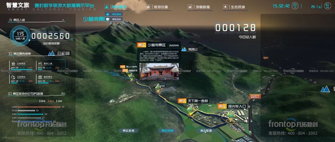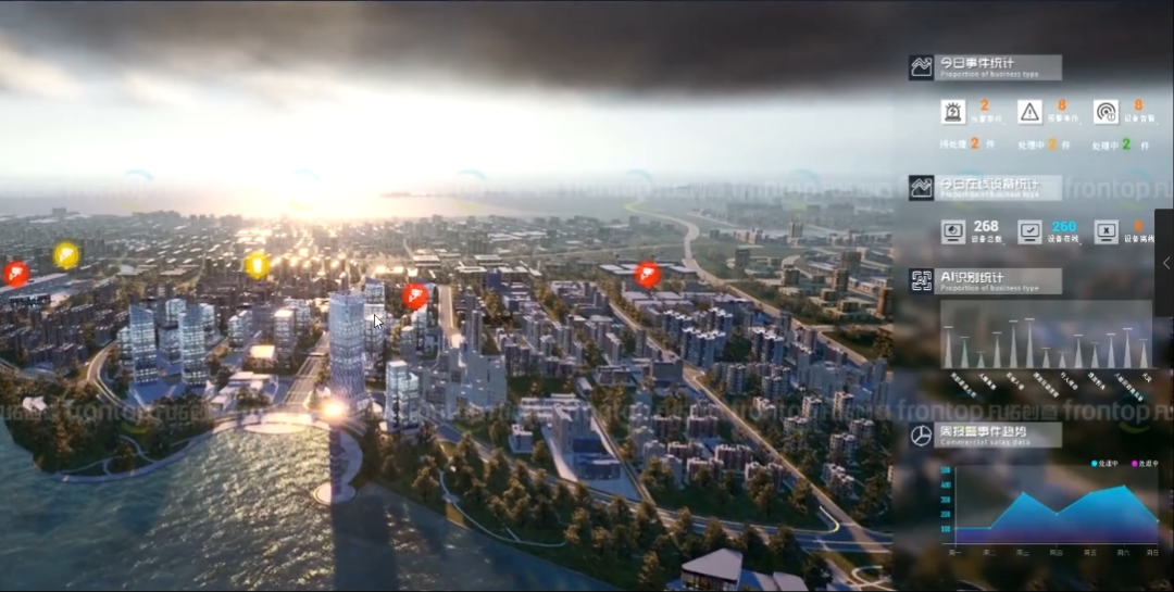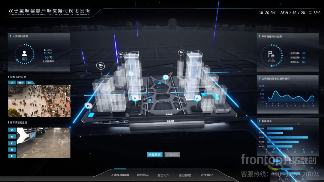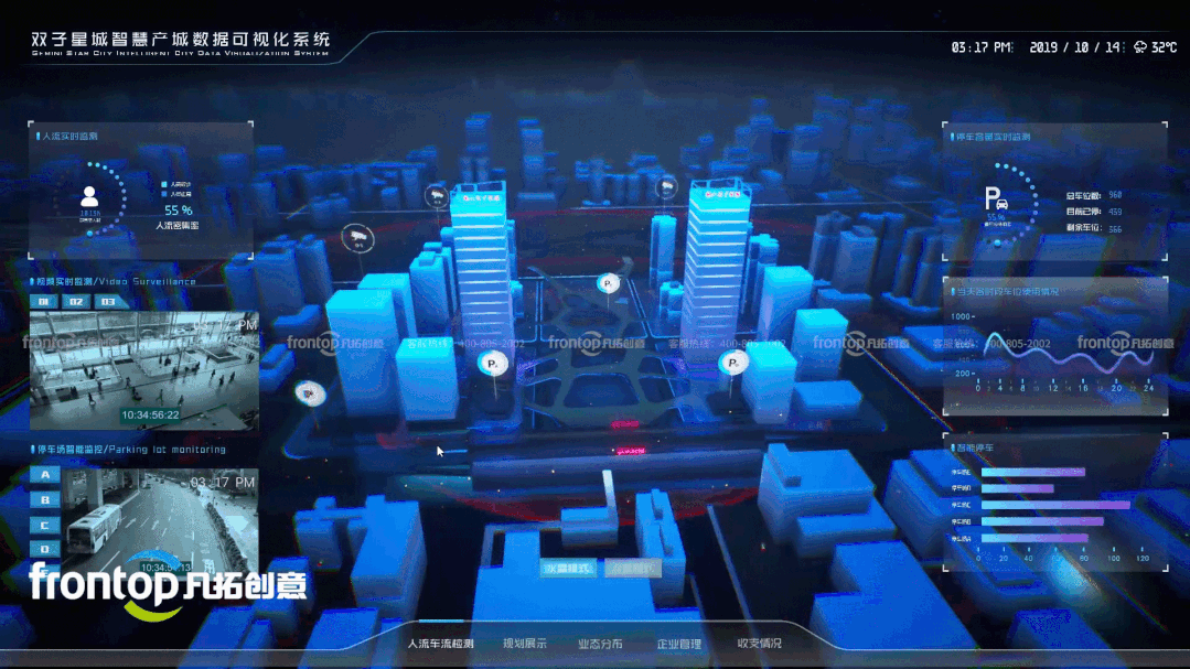 当城市在谈论“数字孪生” 的时候,在谈论什么? FRONTOP 如今,在数字化及新基建的浪潮下,2022年数字孪生城市建设已迎来重要机遇期。随着城市规模的扩张与智能化的应用,城市治理的复杂问题便显得更为突出:规模庞大,难以统一管理指挥;数据复杂,难以构建融合场景;管理领域众多,难以统一决策依据。且当城市经历疫情的袭击,智慧城市便更加承担起应对重大突发事件的关键角色,对疫情防控及有序科学的复工复产起到重要作用,那么,提升城市的“数字孪生力”便逐渐成为智慧城市必不可少的管理“利器”。 数字孪生城市是利用数字可视化技术在虚拟平台“克隆”一个现实城市的“本体”形成虚拟孪生体,“本体”的活动动态会实时复制到孪生体中上,使孪生体“活起来”,形成智慧城市管理的“一屏观天下”的城市大脑,通过集成化、智能可视化的技术融合,达到城市管理的“知行合一”和“一网治全城”,实现城市要素实体数字化、运行态势可视化、运维管理和决策管理科学化。 凡拓数创作为国内知名的智慧城市可视化产品与服务提供商,以近20年专注3D可视化领域沉淀的技术优势及全自研平台FT-E(Fast Tempo Engine) 为核心技术,面向智慧城市,提供一站式、全程智慧化项目管理和保障。凡拓数创在“2021亚太智慧城市评选”中荣获“2021中国领军智慧城市数字展示解决方案提供商”、“2021中国领军智慧园区解决方案提供商”两大奖项!其中,凡拓数创与华为一同入选“2021中国领军智慧园区解决方案提供商”荣誉榜单。 城市万物皆可“数字孪生” FRONTOP 凡拓数字孪生城市解决方案以城市物联基建作为底座,网络通讯为纽带,运用遥感、地理信息系统、数字孪生等技术,形成城市之窗,对城市实现多尺度、多时空、多维度的态势感知。结合融合通讯系统、工单派遣系统、预案管理系统等,实现城市联动智慧体系;结合AI人工智能、物联控制平台,实现城市智能调度体系;结合交通物流平台、产业共建平台,实现城乡经济共建体系。形成智能交通、智慧社区、智慧能源、智能制造、智慧农业及水利、智慧教育、智慧医疗、智慧文旅、智慧家居、智慧政务等10大数字化应用场景,辅助城市的整体数字化升级。 数读港城 体验智慧连云港 FRONTOP 作为城市超脑智能中枢指挥中心,智慧城市运营中心结合凡拓大数据3D可视化技术,以超大尺寸LED大屏全面展示连云港市政务服务、经济运行、民生舆情等运行态势,实现了对城市各业务部门及系统的界面集成、数据集成、服务集成、流程集成等,同时实现城市全面数据综合分析呈现、多部门智能业务协同和城市管理综合智能分析,为城市决策管理者提供决策支撑,让城市管理者“看得见城市问题,听得见城市声音,感受到城市温度,预判到城市发展”,实现城市“慧治理,慧服务,慧增长”。 BOX全沉浸式影院通过三维立体投影结合三维数字影像技术,多层次剖析演绎数字连云港未来的时空大数据:BOX全景空间基于GIS的时空数据的多维表达,叠加多类型数据,并对复杂信息进行处理、表现和分析,实现多维动态信息可视化。 港城印象:智能科技开启智慧城市新体验 LED大屏与数字孪生城市大数据信息整合,实时数据可视化展示连云港城市运营中心馆内环境、访客信息、数量、走势等等数据。 开启连云港大数据智能化管理模式,感受城市大数据的高效便捷,市民通过智能人脸身份识别进入沉浸式环幕体验空间。在磅礴大气的沉浸式环幕影院中,细心感受连云港“港城·智城·新城”的城市风采。 云建强政:协同高效便民的新型政府 数控多屏联动系统通过大数据信息柱形象呈现连云港智慧政务建设成果。未来“只进一个门”就能轻松解决政、企、民三者间的政务交流互动。 基于城市大数据与云平台,凡拓开发运用全新升级的大数据三维地理信息可视化展示系统,全面呈现智慧连云港城市基础区域功能分析的时空信息数据库,让体验者感知到城市的智能与便捷。 城市数据是城市发展的基础,其中地质资源是整个城市相关周边地形环境的展现,三维可视化集成整合此类信息,可以为后续城市规划提供可量化的实时反馈。 云起互联:大数据提升城市发展动力 体验推拉屏结合AR增强现实三维技术应用的同时,参观者可以手动了解连云港市数字政府顶层总体架及未来三年的建设计划,交互体验更加惊艳! 物联网、云计算、大数据是推动智慧城市发展的动力,展区以三维立体呈现连云港城市大数据共享交换、开发利用等平台建设过程。 未来,以5G网络为基础的物联网,将会带来更多变革,让人们的生活变得更加便利。 云惠民生:智慧城市建设惠及民众生活 在智慧交通板块,市民可以通过创新互动的滑块双屏联动交互体验交通网络的智能化发展,综合体验交通数据共享交换平台的便捷。 同时,运行智慧AI医院,让市民感受医疗卫生智慧化和信息化建设成果,如智能医疗贴身服务、智慧远程治疗、自助体检、实时远程跟进健康服务等。 此外,运营中心推行2.0信息化智慧教育,全息触摸屏与大屏联动展示信息化教育建设成果,该系统连接全市教师、学生、家长的空间网络大数据,是统一开放的教育信息化平台。 在凡拓数字孪生城市系统的助力下,连云港智慧城市运营中心高效融合展示、体验、服务和办公等体系,在推动城市管理“绣花”般精细和服务体